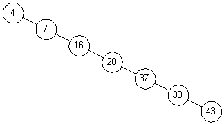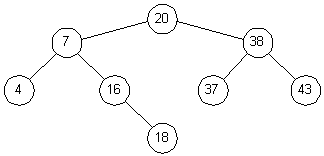 A binary search tree is a tree where each node has a left and right child. Either child, or both children, may be missing. Figure 3-2 illustrates a binary search tree. Assuming k represents the value of a given node, then a binary search tree also has the following property: all children to the left of the node have values smaller than k, and all children to the right of the node have values larger than k. The top of a tree is known as the root, and the exposed nodes at the bottom are known as leaves. In Figure 3-2, the root is node 20 and the leaves are nodes 4, 16, 37, and 43. The height of a tree is the length of the longest path from root to leaf. For this example the tree height is 2.